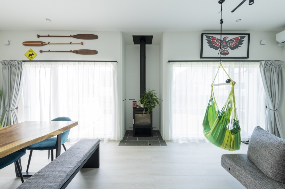 リビングの中心には暖炉があり家族みんなで団らんできます。