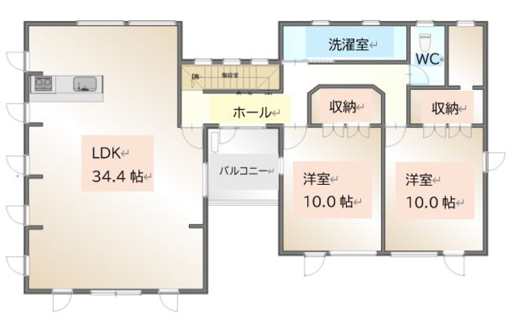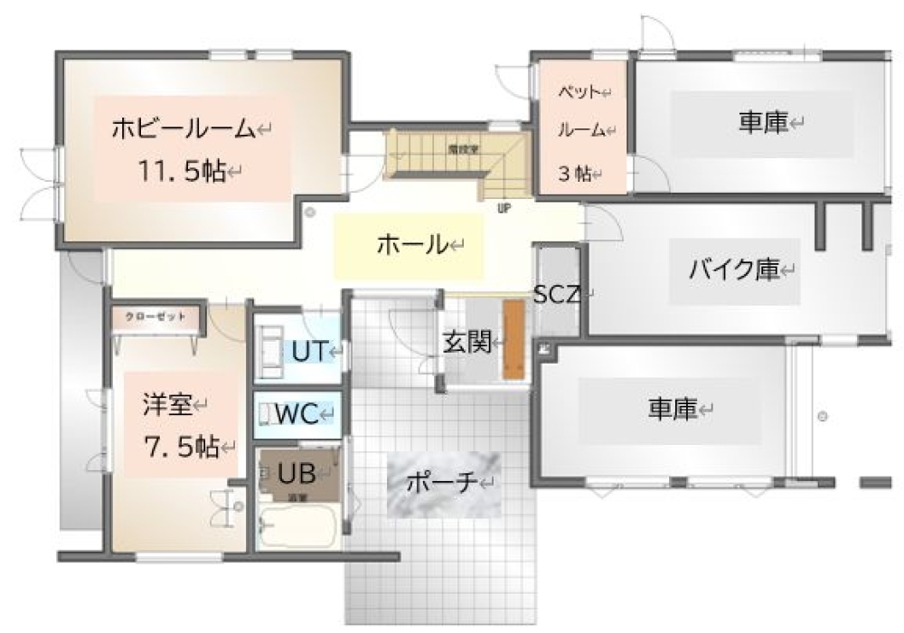 なんとLDK34.4帖の広さ!洋室も7.5,10,10,11.5帖にペットルームや