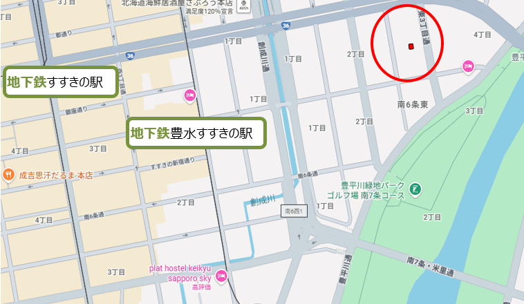 地下鉄東豊線、南北線、東西線すべての駅が徒歩9分圏内にあり、商業施設、飲食施設なども近いです。 すすきの繁華街が近いので観光にピッタリ。民泊物件の土地としておすすめです。 -